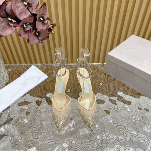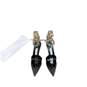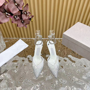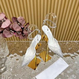 ポインテッドトゥ、ラインストーンチェーン付きハイヒール、メッシュホットダイヤモンド、女性用本革サンダル、スティレットヒール、エレガントなウェディングシューズ