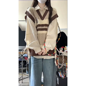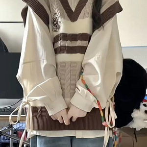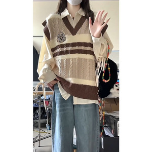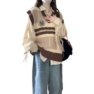 日本のカレッジスタイル!! !ストライプニットベストレディースレイヤードストラップインナー