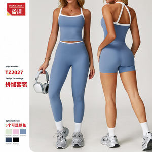 Zechuang ヌードヨガスーツコントラストカラークロスバックタイトヨガスーツ女性のランニングスポーツフィットネススーツ 2027