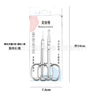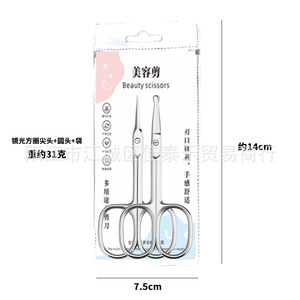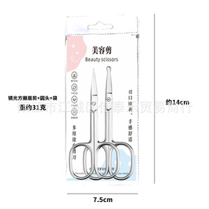 3.0ミラーライトスクエアアイブロウシザー+鼻毛シザー+紙カード吊り袋