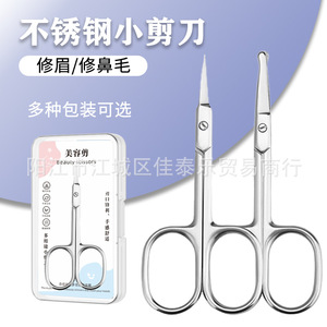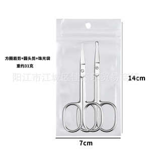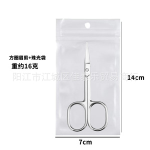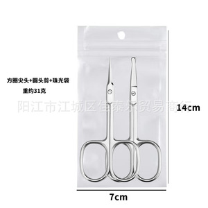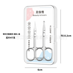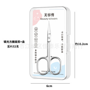 3.0ミラーライトスクエアアイブロウシザー+鼻毛シザー+PPプラスチックボックス+ハンギングバッグ