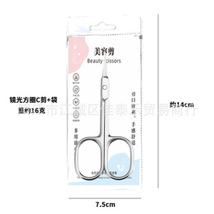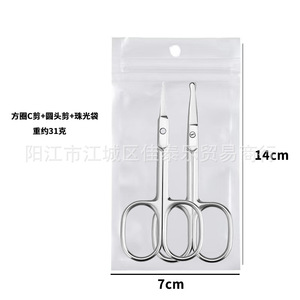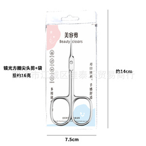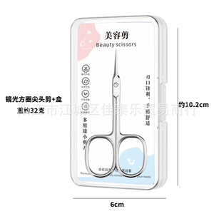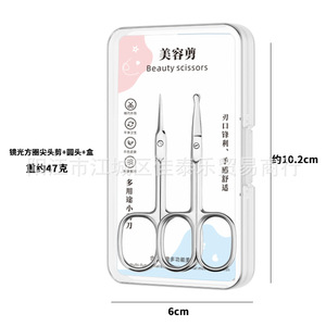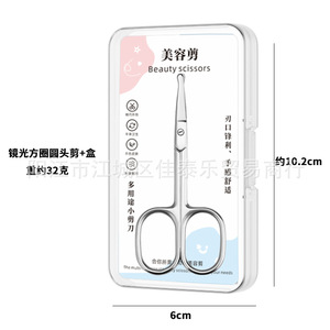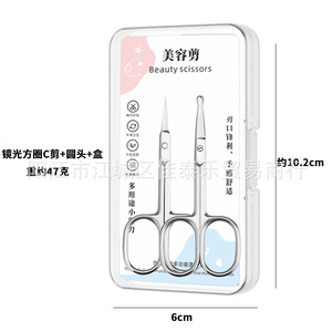 3.0ミラーライトスクエアサークル尖ったはさみ+鼻毛はさみ+PPプラスチックボックス+吊り袋