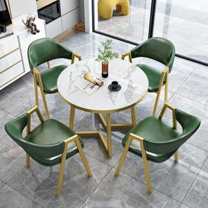 80CM ゴールド V スタイル ラウンド テーブル + 椅子 4 脚 + ダークグリーン レザー