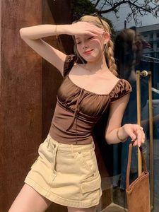 Sweet Hot Girl スクエアネックオフショルダー半袖 Tシャツレディース夏新作スリムデザインニッチでシックで美しいショートトップ