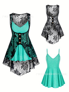 2025年アマゾンクロスボーダーレディース文学刺繍レースキャミソール2点セット