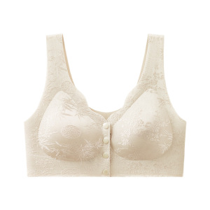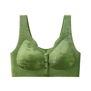 中高年向けノンワイヤー中国風浮き彫りジャカードブラ、ポータブルフロントボタン、プッシュアップ、シームレスブラ、フルカップ