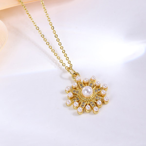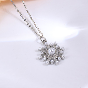 新鮮で甘くてかわいい模造パールラブスノーフレークネックレスペンダント銅メッキ18K色保持女性のパーソナライズされたトレンディなペンダント