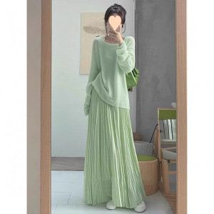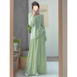2025一整套温柔针织衫漂亮多巴胺上衣韩系百褶裙半身裙套装