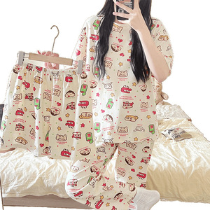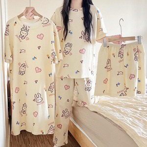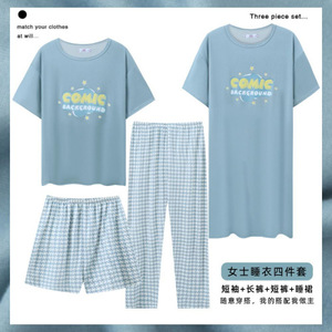 女性用パジャマ4点セット、夏用半袖ナイトガウン、漫画、かわいくて甘い、日本の女の子