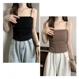 胸パッド付きキャミソール女性用、快適な弾性プリーツ痩身ウエストスポーツブラ、女性用チューブトップ