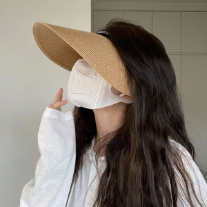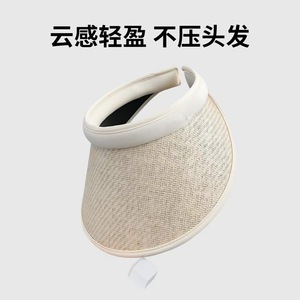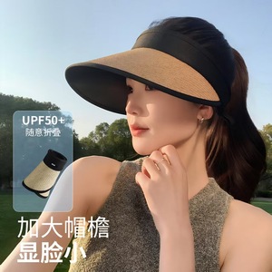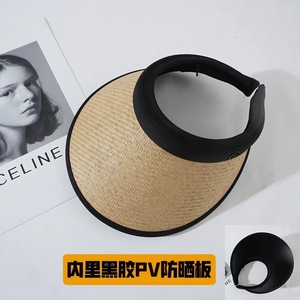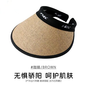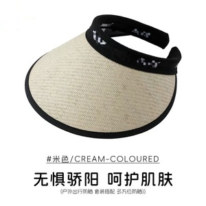 女性用アイランドリゾートラフィア中空トップサンハット、日焼け止め、UVカット、通気性、蒸れない麦わら帽子