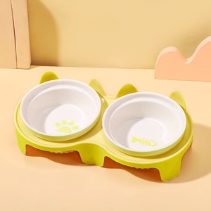 セラミックダブルボウル+黄色の漏れ防止フードラック