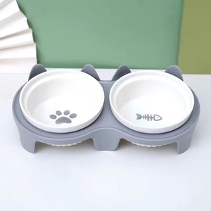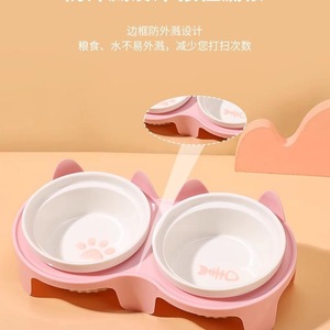 猫ボウルセラミックキャットフードボウル猫ボウル犬ボウルフードボウルペットの斜めの口は頚椎を保護し、転倒を防止し、水を飲むためのダブルボウル