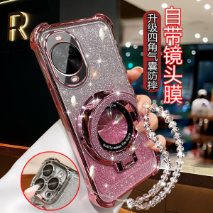 四角防摔-透粉【细闪磁吸支架】一体镜头膜+手链