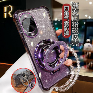 四角防摔-透紫【细闪磁吸支架】一体镜头膜+手链