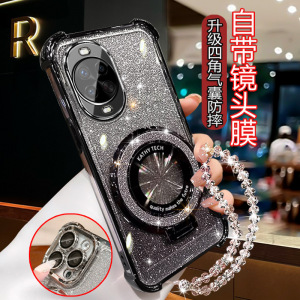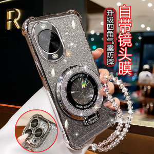 四角防摔-透银【细闪磁吸支架】一体镜头膜+手链