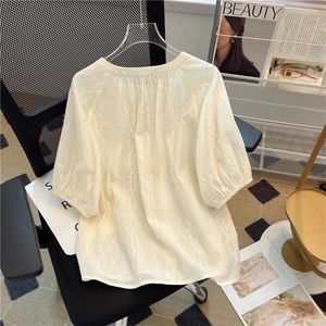 フレンチレトロ刺繍半袖シャツ女性のための夏の2025新しいルーズスリム西洋スタイル年齢軽減ベビードールシャツトップ