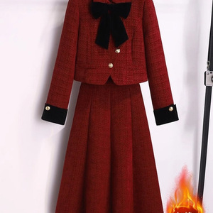 新年过年战袍小香风连衣裙女冬季2025新款订婚新娘敬酒礼服两件套
