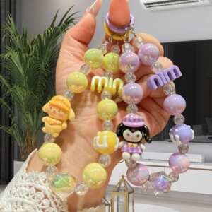 新しいリリス漫画キティ携帯電話チェーンバッグペンダント diy キーチェーン携帯電話ペンダント手描きビーズビーズ
