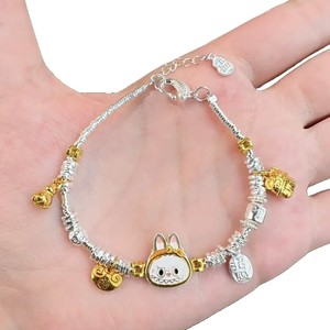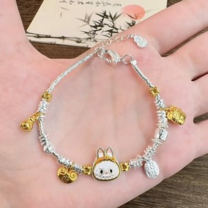 ゴールドとシルバー 999 シルバーブレスレット新しい中国風バブルマットラブブブレスレット女性のギフト