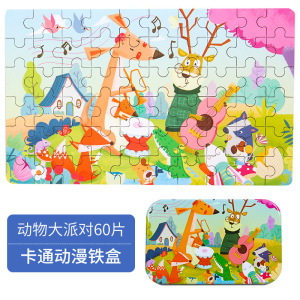 60 ピース鉄箱入りパズル子供の早期教育パズルアニメ漫画木製フラットパズル幼稚園のおもちゃ卸売