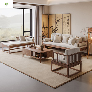新中式宋代美学纯实木全套沙发家用禅意家庭客厅新款高端原木轻奢