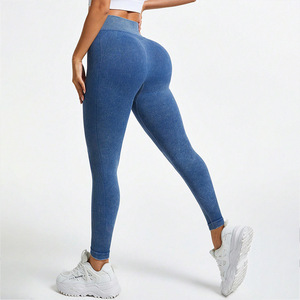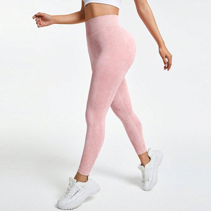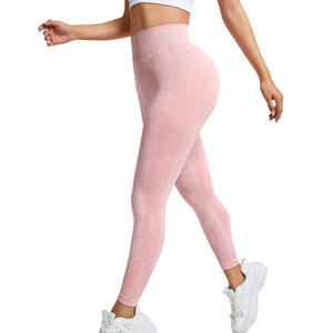 女式无缝纯色高腰运动健身裤休闲日常穿着紧身砂洗速干瑜伽裤长裤