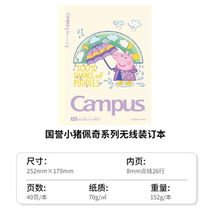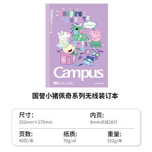 日本製 コクヨ ペッパピッグ ジョイント ワイヤレス製本ノート ソフトカバー B5/40ページ