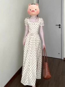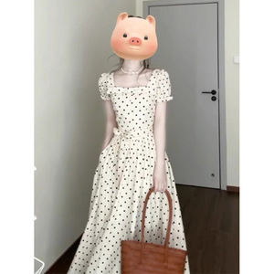 Gejia モールの同じスタイルの女性の 2025 夏フレンチレトロ水玉ドレス女性の夏の優しいスタイルのスカート