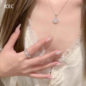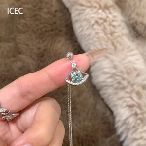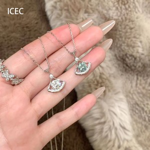 新しい中国風のブルーの小さなスカートネックレス、ファッショナブルで高級感のある扇形の鎖骨チェーン、ニッチで軽い高級感のあるネックレス