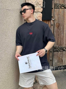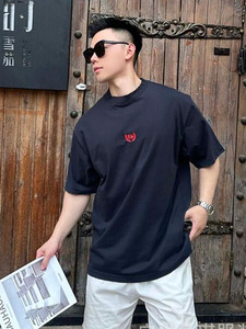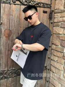 男女カップル春夏新作小麦文字ロゴ胸刺繍ウォッシュ半袖Tシャツ品質の違い