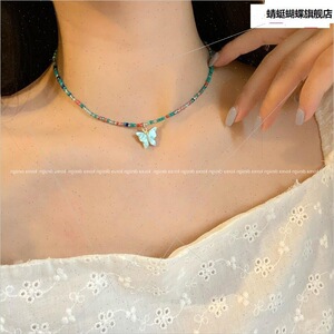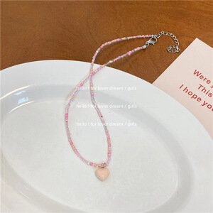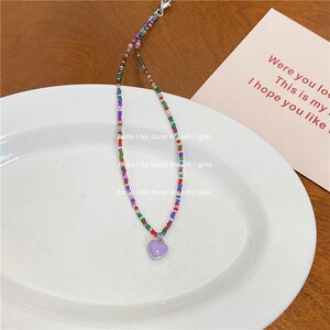 韩版甜美百搭糖果色多巴胺爱心米珠项链串珠少女气质锁骨链女