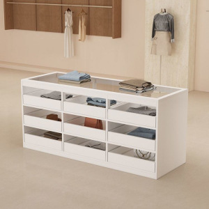 衣料品店のレジカウンター、アイランドカウンター、流水ディスプレイスタンド、装飾品ディスプレイキャビネット、ディスプレイバーディスプレイガラス