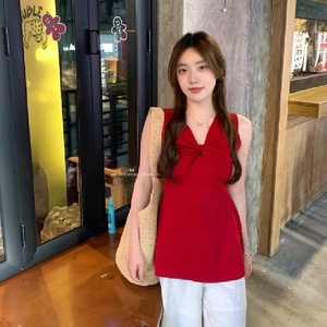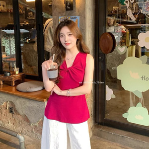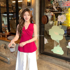 夏ドーパミンツイスト V ネックニットベスト女性のアウターウェア夏の新しいスリムフィットノースリーブニットトップ