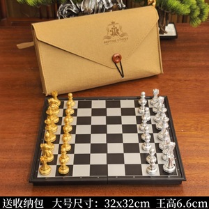 小学生向けのハイエンドチェス、磁気ポータブル大型折りたたみチェス盤、競技用の特別な金と銀のチェスの駒