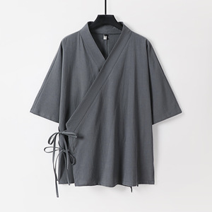 中国風のレトロな綿とリネンの七分袖メンズ斜め襟改良された漢服古代衣装中国のエスニックスタイルの在家服禅服男性用