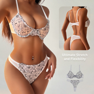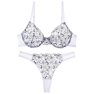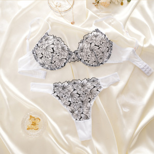 ヨーロッパとアメリカの貿易婦人服レース刺繍セクシーなフリル中空ホットガール純粋な欲望の下着セットクロスボーダー新スタイル