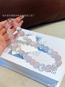天然ローズクォーツ六芒星ライトパウダービーズクリスタルブレスレットクリスタルブレスレットスノーフレークホワイトゴーストスター同じスタイル
