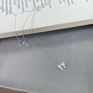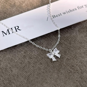 Titch スターリングシルバー 999 絶妙で甘いリボンネックレス、女性用、軽い高級感、ニッチな輝くダイヤモンド、気質、鎖骨チェーン、トレンディで多用途