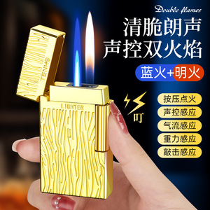 Douyinの人気ブラックテクノロジー音声起動ライターインフレータブルライターダブルファイアスイッチングラウンドライターハイエンドギフト