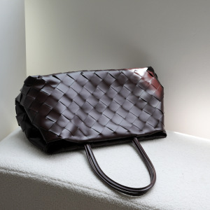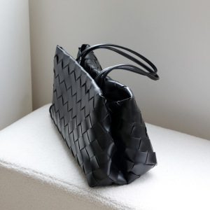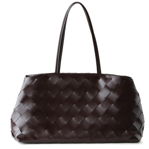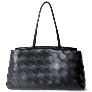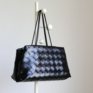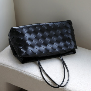 ニッチデザインブラック菱形人工手織りクラフト大型バッグ外国風トートバッグシングルショルダー脇の下バッグ