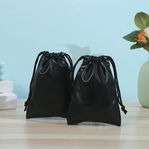 ブラック防水 PU レザーバンドルポケット携帯電話ヘッドフォン巾着袋データケーブルモバイル電源小型バンドル収納袋