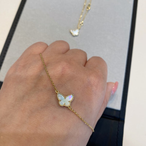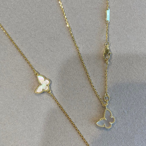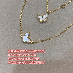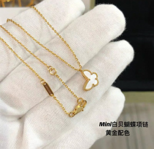 高版本CNC精雕V金四叶草蝴蝶系列项链厚镀18K金白贝母吊坠锁骨链