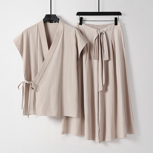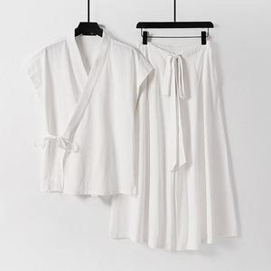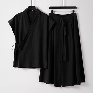 ツーピース唐スーツメンズサマーベストTシャツエスニックスタイルノースリーブベスト中国風綿とリネンスーツ男性用