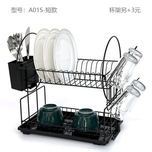 キッチン食器棚収納ラック 2 層黒大容量 2 層食器棚ボウルとプレート収納ラック炭素鋼