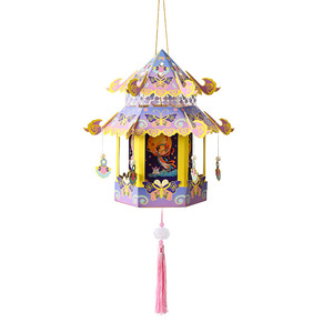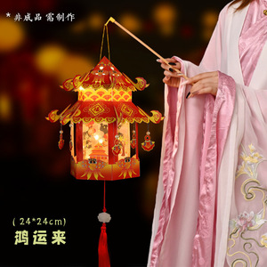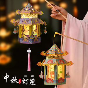 中秋節ポータブルランタン、エレガントな古代スタイルのランタン、子供用手作りDIY素材パッケージ、発光提灯、小さな宮殿ランタン
