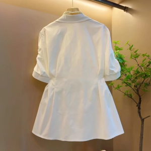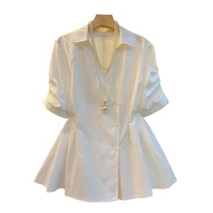 プラスサイズの女性の 2025 夏の新しい白い半袖シャツ女性の痩身ファットガールカジュアル気質ウエストトップ