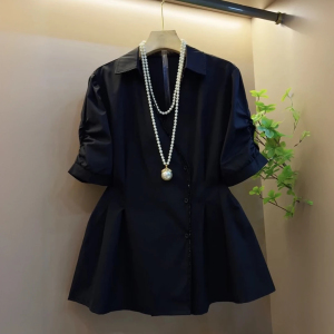 ブラック【夏/夏服/2025新作/太mm大きいサイズ婦人服/超格好良い小さめシャツ/シックな韓国風/今年人気の美しい/プリント/ショート