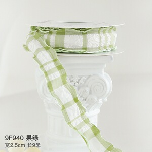 2.5cm ライトグリーンのフレッシュチェック柄ベルト