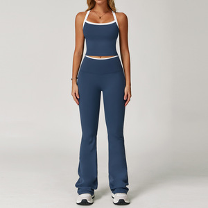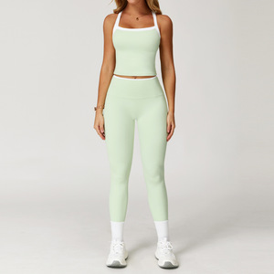 夏ヌードヨガスーツコントラストカラークロスバックタイトヨガスーツ女性のランニングスポーツフィットネススーツ 2027